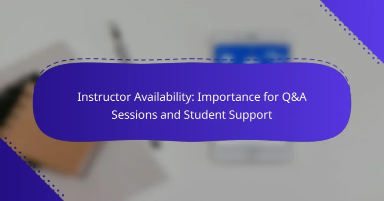 Dostupnost instruktorů je klíčová pro efektivní Q&A sezení a poskytování podpory studentům. Umožňuje studentům rychle získat odpovědi na jejich dotazy, což zvyšuje jejich porozumění a motivaci k učení. Zajištění pravidelných hodin a využití online platforem může výrazně zlepšit komunikaci a interakci mezi instruktory a studenty. Jaká je důležitost dostupnosti instruktorů pro Q&A sezení a podporu…